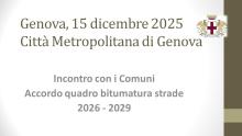 Le slides allegate si riferiscono all'incontro tra la SUA di Città Metropolitana di Genova e le Amministrazioni comunali del territorio, tenutosi lunedì 15 dicembre 2025, nel corso del quale sono stati illustrati i contenuti del progetto, le procedure e modalità di attivazione dei contratti derivati